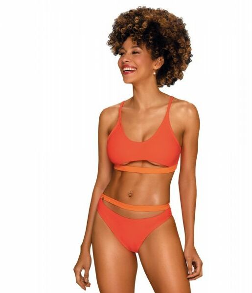 Открытые формы, подчеркнутая грудь и бедра - в спортивном стиле в бикини Miamelle. Дополнительная полоска под бюстом и над линией трусиков придаст вам ультра-женственный и фантастический вид. Необычный крой сделает ваши ноги оптически удлиненными, а ягодицы подчеркнутыми. Наслаждайтесь элегантностью классического черного с оттенком дикости или свежего оранжевого цвета. Какое бикини станет вашим на праздник покорения
