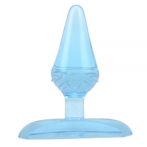 Анальная пробка голубого цвета. Небольшой размер пробки подходит для начинающих, а ребристая поверхность для дополнительной стимуляции. Материал, из которого сделана пробка, гипоаллергенный. Проста в уходе, легко чистится и моется.