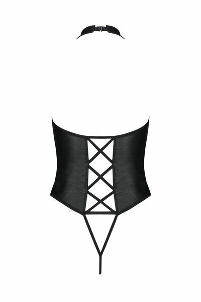 Боди из эко-кожи с имитацией шнуровки и открытым доступом Nancy Body black S/M - Passion:
