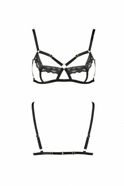 Откровенный бюстгальтер-стрепы с кружевом для уверенных в себе женщин! Он идеально сядет на любую грудь благодаря возможностям регулировки: каждый ремень вы сможете подтянуть конкретно под себя. Шикарное кружево дополняет изящный дизайн. Наденьте его в свой особенный вечер, и ваш партнер будет приятно удивлен! А выглядывающая в декольте верхняя часть заставит его сердце биться чаще задолго до интимной близости.