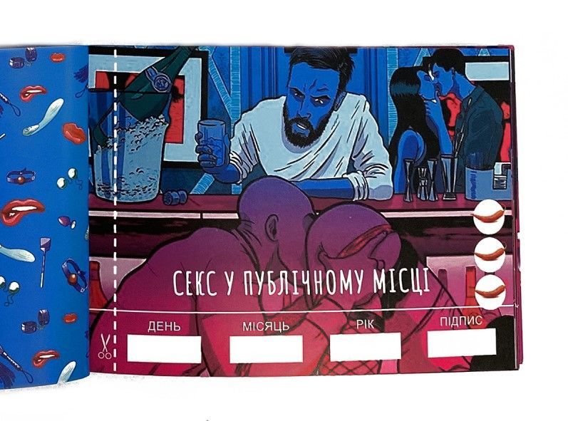 30 чеків самих різних сексуальних фантазій і бажань, які урізноманітнюють ваше інтимне життя. Це мабуть, найкращий подарунок для обох партнерів, так як обидві сторони залишаться задоволеними. Слоган книжки звучить так "від поцілунків, до повної покори ..." Доведіть, що заради своєї коханої людини ви готові пройти цей шлях.