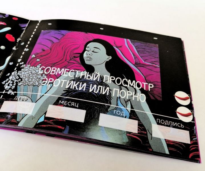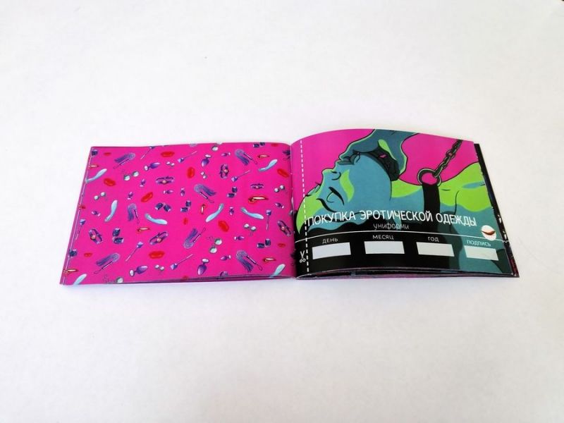 30 чеков самых разных сексуальных фантазий и желаний, которые разнообразят вашу интимную жизнь. Это, пожалуй, лучший подарок для обоих партнеров, так как обе стороны останутся удовлетворенными. Слоган книжки звучит так "от поцелуев до полного повиновения." Докажите, что ради своего любимого человека вы готовы пройти этот путь.