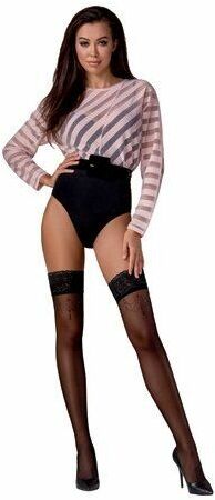 Продемонстрируйте высший пилотаж женственности, нежности и легкости, купите чулки Passion ST120 3/4 черные, на ажурной силиконовой резинке, с изысканным декором и люрексовой нитью.