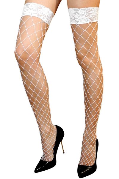 Белые чулки в крупную сетку Anne De Ales ERICA T4 White - это вызов и провокация, подчеркивающие вашу женственность и сексуальность. Чулки идеально повторяют линии ваших ножек. Красивая ажурная резинка, скрывающая силиконовую ленту, благодаря которой чулки надежно держатся на бедре, добавит в ваш образ особый шарм.