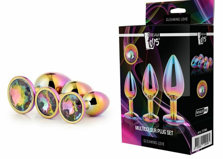 Коллекция Gleaming Love представляет этот набор блестящих анальных пробок трех размеров, каждый с драгоценным камнем.