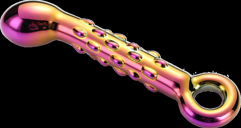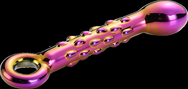 Этот фаллоимитатор изготовлен из боросиликатного стекла, которое очень прочное, непористое, гигиеничное и безопасное для тела. Фаллоимитатор имеет цвета мыльных пузырей, что придает ему гламурный вид. Продуманный дизайн имеет угловой наконечник, который идеально подходит для легкого доступа к точке G или P. Бугорки на стержне добавляют дополнительную стимуляцию. Для удобства использования у основания есть вытяжное кольцо.