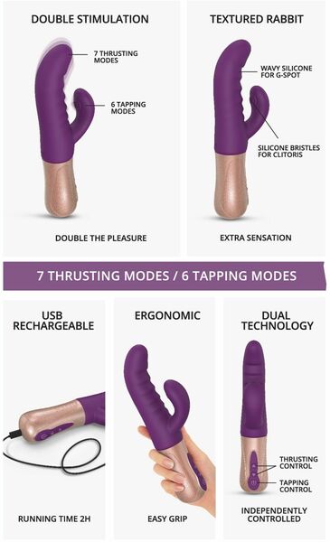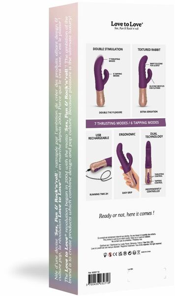 Удовлетворит даже самых требовательных и продвинутых! Предлагаем купить двойной пульсатор кролик Love To Love SASSY BUNNY — уникальный кролик с пульсацией и в стволе, и в отростке! Один мощный мотор обеспечивает шикарную стимуляцию клитора в 6 режимах, будто настойчивый пальчик быстро-быстро постукивает по заветной жемчужинке. Второй — стимулирует точку G (в 7 режимах) движениями вперед-назад. Моторы работают полностью независимо и управляются отдельно. Дополнительные микро отростки на клиторальной части сделают ощущения еще более богатыми! Удобный, комфортный и технологичный.