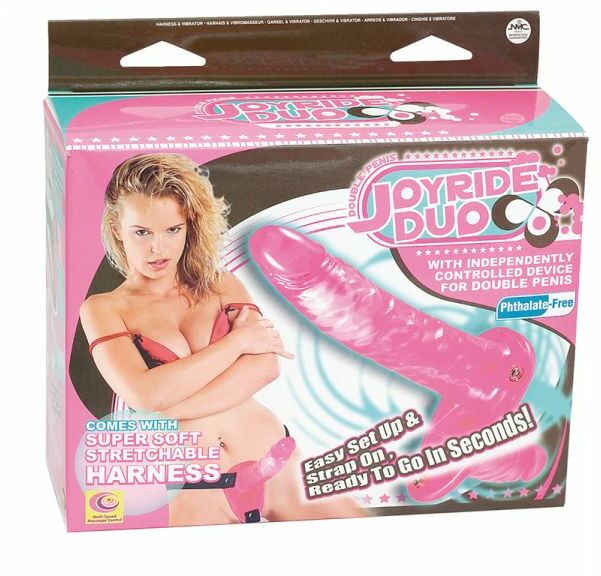 JOYRIDE DUO, PINK - двойной страпон с поясом. Пояс очень мягкий и эластичный, размер регулируется. JOYRIDE DUO имеет многоскоростную вибрацию. Изготовлен из безопасных для тела материалов. Не содержит фталов.