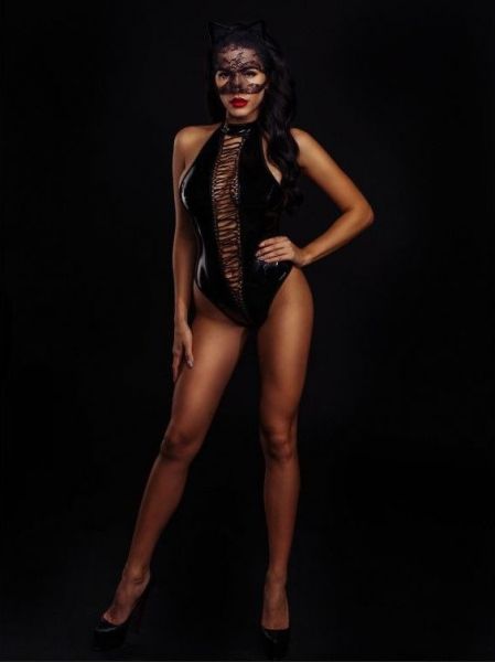 Полное разоблачение, при котором самые пикантные детали остаются прикрытыми — все возможно с этим костюмом! Лаковый боди плотно облегает фигуру, высокие вырезы по бокам визуально удлиняют ноги, а шнуровка спереди добавляет эротизма. Костюм состоит из: