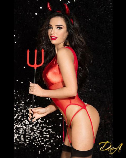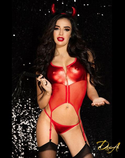 Хотите испытать максимальный накал страстей и насладиться действительно горячим сексом? Тогда вам точно необходимо купить эротический костюм дьяволицы "Огненная Саманта"! Боди из микросетки с лаковыми вставками, трусики-стринги, чулки и игривые рожки создадут яркий и по-настоящему горячий образ.