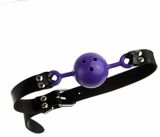 Небольшой ластексный шарик с отверстиями надёжно закрепляется с помощью металлических колец и кожаного ремешка на голове партнёра, предоставляя Вам большую свободу действий.