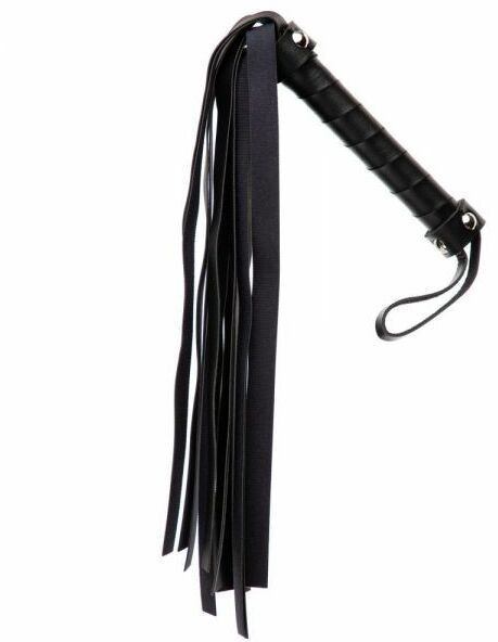 Плеть выполнена из искусственной кожи, имеет твердую рукоять, на конце которой размещена петля для более удобной фиксации девайса на руке.