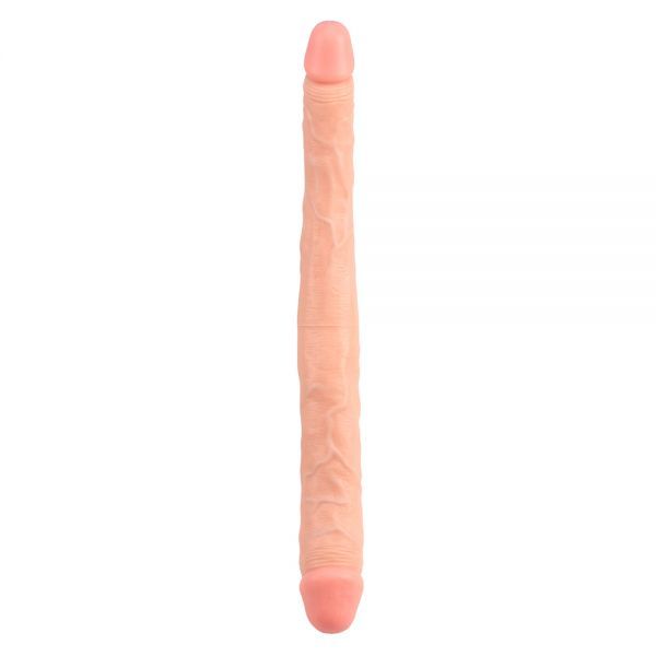 Двойной фаллоимитатор выполнен из высококачественного материала. Рельефный ствол с выпуклыми венками дополнительно простимулирует влагалище, а также анус. Его можно использовать в играх на двоих, а также, благодаря тому, что фаллос хорошо гнется, для двойного проникновения.