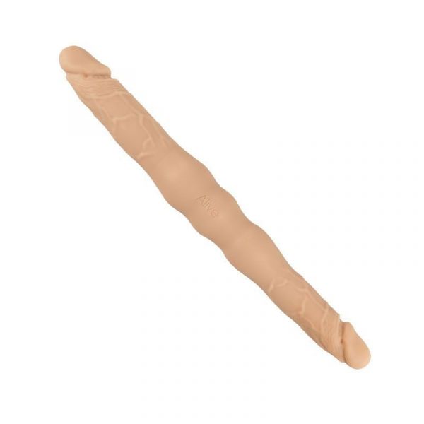 Каждый из концов имеет ярко выраженную головку, складки крайней плоти и выступающие вены. Такой объемный рельеф будет приятно массировать внутреннюю часть влагалища и ануса. По середине фаллоимитатора имеются эргономичные выступы для надежного удержания игрушки, даже если она вся будет в смазке.
