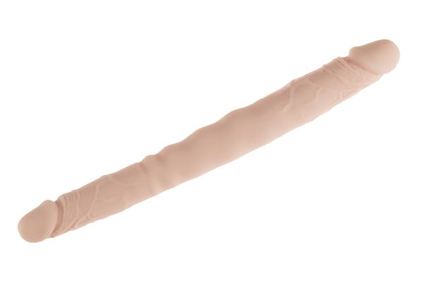 Общая длина игрушки составляет 30см, диаметр одного конца составляет 3,1см, диаметр второго - 2,7см. Каждый из концов имеет ярко выраженную головку, складки крайней плоти и выступающие вены. Такой объемный рельеф будет приятно массировать внутреннюю часть влагалища и ануса. По середине фаллоимитатора имеются эргономичные выступы для надежного удержания игрушки, даже если она вся будет в смазке.