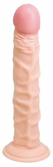 Фаллоимитатор телесного цвета. Четко выраженная головка, рельефная поверхность, фаллоимитатор на присоске, выполненный в виде реалистик.