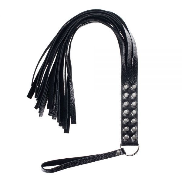 Кожаный флогер чёрного цвета. Изготовлен из натуральной телячьей кожи высшего качества. Ручка сформирована при помощи заклепок из нержавеющей стали. Для удобства имеется петля.