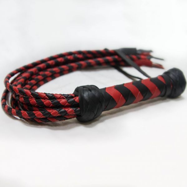 Элегантный длинный флогер с витыми хвостами. Для еще большего эффекта от ваших БДСМ экспериментов каждый хвостик имеет раздвоенный кончик. Используйте этот флогер для легкого разогрева и для сильных ударов. Рукоятка флогера плотная, обвита натуральной кожей, хвосты изготовлены также из натуральной кожи, на ручке имеется петелька для более удобного использования аксессуара.