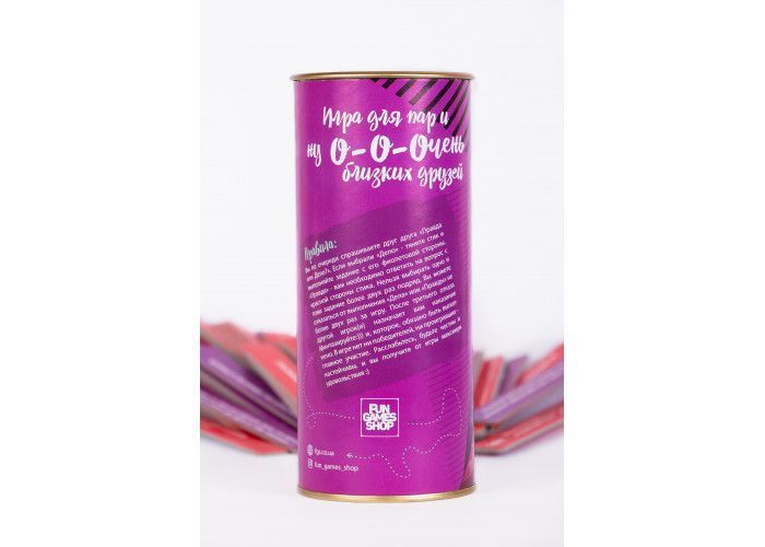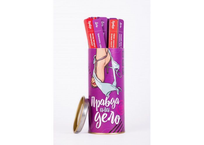 Это игра для влюбленных пар или для очень близких друзей, которые не стесняются пикантных вопросов и очень откровенных заданий. Влюбленным парам игра поможет освежить отношения, раскрепоститься, а возможно даже узнать что-то, о чем раньше не смели спросить. Правила очень просты: игрок выбирает "Правду" или "Дело", тянет стик и выполняет соответствующее задание. Если "Правда" - игрок отвечает на вопрос с красной стороны стика, если "Дело" - выполняет задание с фиолетовой стороны. В этой игре нет победителей и проигравших, расслабтесь и получите удовольствие от процесса игры.