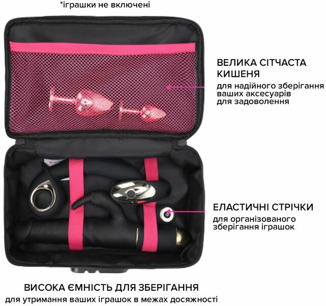 Ваш секрет принадлежит только вам! Предлагаем купить кейс игрушек с кодовым замком Dorcel DISCREET BOX, вместительный и очень удобный. Строгий дизайн и исполнение в черном цвете никогда не выдаст истинное предназначение кейса! При этом в него поместится не меньше 5 игрушек среднего размера, которые вы эргономично разместите благодаря резинкам и внутреннему карману.