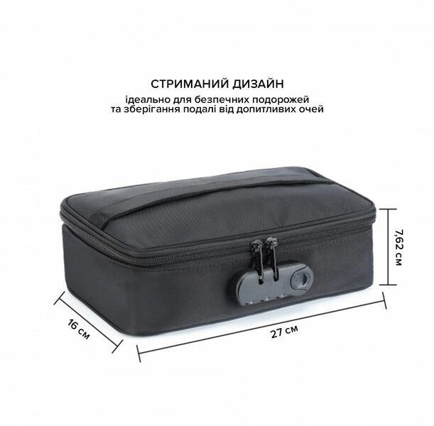 Кейс оснащен двусторонней молнией, а также кодовым замком с трехзначным кодом. Никто не откроет вашу тайну, даже если вы оставите кейс на виду! Инструкцию по установке кода вы найдете внутри кейса.
