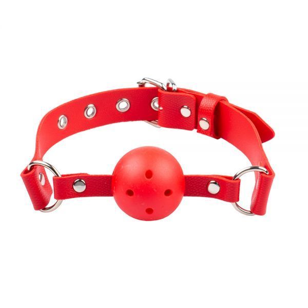 Кляп выполнен из качественного пластика. На кляпе сделаны отверстия для свободного доступа кислорода, которые также делают возможным издавать звуки. Ремешок на застежке имеет регулировку по длине, что позволяет надежно фиксировать кляп на партнере. Шарик имеет комфортный размер.