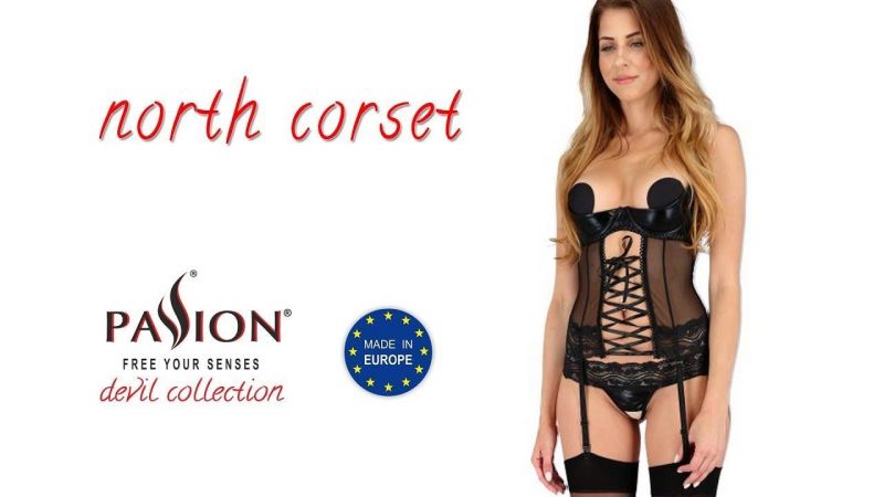 Предлагаем купить сексуальный корсет PASSION NORTH CORSET чёрный, изготовленного из фатина и ламы с кружевными вставками. Элегантное бельё черного цвета красиво подчёркивает все достоинства женской фигуры, умело маскируя недостатки. Откровенность белья зашкаливает. Открытый бюстгальтер с косточками поддержит вашу грудь, делая её ещё более аппетитной и желанной. Ленточки на животе так и манят развязать их. Почувствуйте себя в новом амплуа! Увидев вас в таком наряде, ваш партнёр непременно захочет вас.