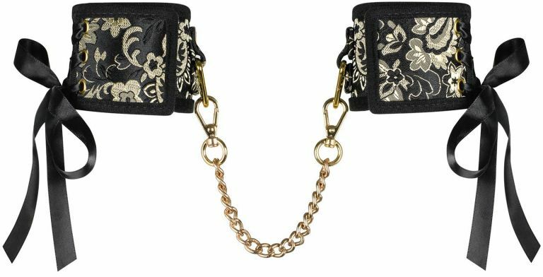 Наручники - гарантия незабываемых впечатлений! Это проверенный метод жаркого вечера на двоих. О, мы знаем, тебе понравится! Наполнение атмосферы игривыми бантами. Вы уже знаете, что хотите! Сексуальная цепочка и золотой узор на элегантном черном фоне - это феноменальное сочетание вам обязательно понравится! А твой мужчина Он будет очарован таким удовольствием! Ну и что У вас появился аппетит к… удовольствиям