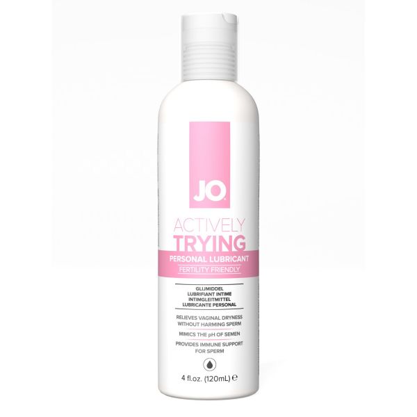 JO Actively Trying - лубрикант на водной основе, создающий здоровую среду для сперматозоидов, оптимизирующий уровень pH, имитирующий щелочной баланс семенной жидкости и фертильной цервикальной слизи. Имеет идеальную вязкость. Смазка обеспечивает комфортное нежное скольжение без липкости. Позволяет свободно смешиваться мужским и женским выделениям без воздействия препятствующих элементов, помогая сперматозоидам завершить путь к оплодотворению яйцеклетки и делая близость более чувственной и яркой. Помогает справиться с вагинальной сухостью без вреда для спермы.