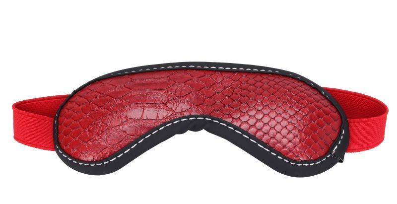 Маска выполнена из структурной экокожи красного цвета. Маска абсолютно не пропускает свет, тем самым усилятся тактильные ощущения, универсальная по размеру