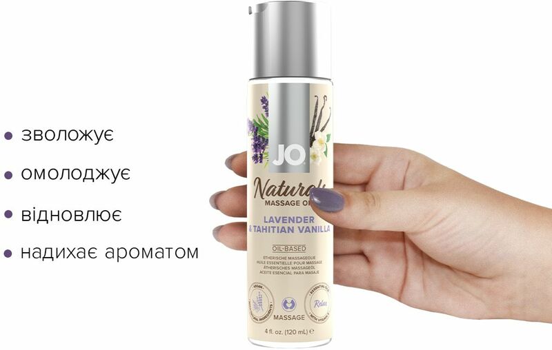 Массажное масло System JO – Naturals Massage Oil – Lavender & Vanilla обладает долгим скользящим эффектом, делает кожу нежной и шелковистой. Благодаря натуральным компонентам, масло не вызывает аллергии и подходит для чувствительной кожи. Легкие нотки нежной лаванды и сладкой ванили помогут создать игривое настроение, усилят чувствствительность и обострят наслаждение. При нагревании на коже, масло раскрывает весь свой ароматный нотный ряд, создавая потрясающую атмосферу близости с вашим партнером.