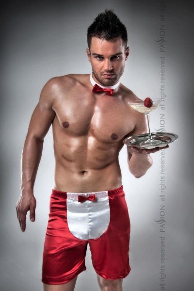 Соблазнительные красные джентльменские трусы - лучший наряд как для ролевых игр, так и для подарка любимой. Длинные атласные шорты карминного цвета отлично дополняются красивой белой вставкой с алым небольшим бантом. Образ можно с легкостью дополнить небольшим ошейником в виде воротника рубашки и бантика, что будет смотреться стильно.