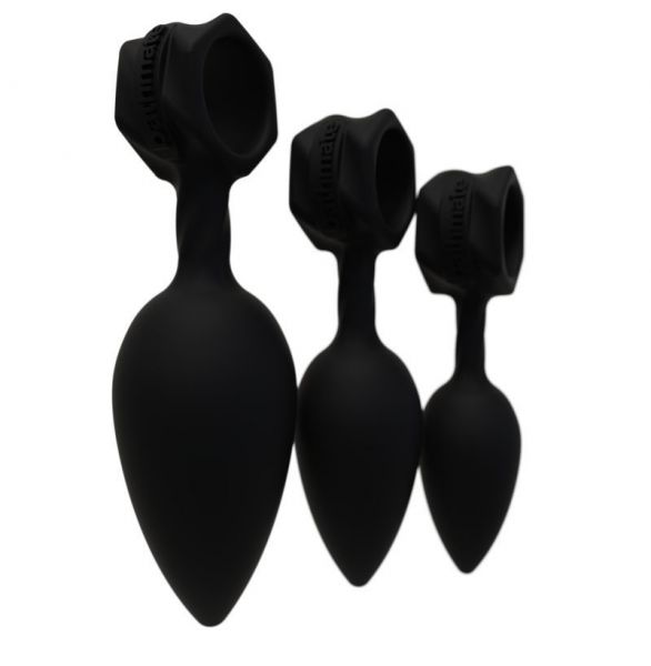 Рекомендуем купить набор из 3 анальных пробок Bathmate Anal Training Plugs. Всего в набор входит три анальные пробки разного размера и диаметра. Они выполнены из безопасного гипоаллергенного силикона, который можно использовать с любой смазкой на водной основе, а очищать водой с мылом и специальным средством для очистки.Форма пробок довольно классическая — зауженная к концу — что обеспечивает комфортность введения. А вот, чтобы достать девайс, каждая игрушка снабжена удобным кольцом-ручкой, которая также служит в качестве стопера или поддержкой для специальной вибропули Bathmate Vibe Bullet, которую можно приобрести отдельно, так как в этот набор она не включена.
