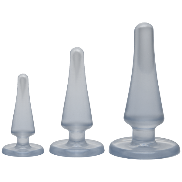Предлагаем купить набор анальных пробок Doc Johnson Crystal Jellies Anal Initiation Kit. Стимуляторы имеют плоское основание, которое одновременно служит безопасным ограничителем.Набор выполнен из современного гипоаллергенного материала с добавлением антибактериальной формулы Sil-A-Gel. В наборе три классические пробочки для анальной стимуляции. Форма конческая, с безопасным уширением к низу и ограничителем. Этот набор идеален и для новичков, только открывающих для себя мир анальных наслаждений, и для более опытных партнёров - для стимуляции ануса перед сексом или использования во время классической близости. Анальные втулки изготовлены из приятного прозрачного эластомера, умеренно упругие и гибкие для комфортного введения.