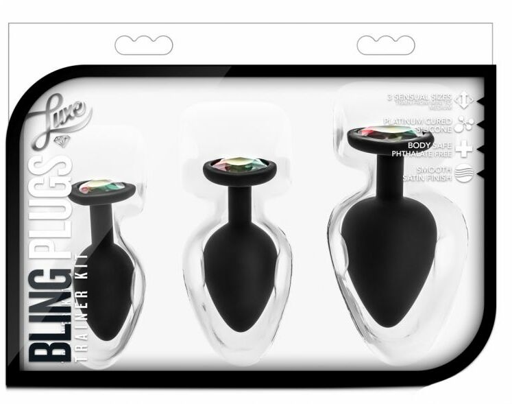 Набор анальных пробок LUXE BLING PLUGS TRAINING KIT BLACK - в этот комплект входит три пробки разных размеров. Каждая пробка имеет конический наконечник для легкого введения. Начиная с маленького размера для начинающих, вы можете постепенно перейти к среднему, а затем к большому, когда вам будет комфортно. Используйте этот комплект, если вы и ваш партнер новичок в анальной игре или просто используйте это в дополнение к своей обычной эротической игре. Для достижения наилучших результатов используйте смазку на водной основе.