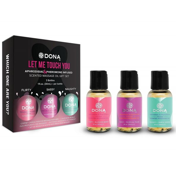 Предлагаем купить набор массажных масел DONA LET ME TOUCH YOU с афродизиаками и феромонами — сразу три великолепных аромата в одном наборе!