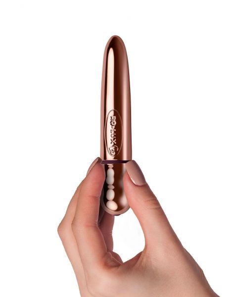 - Rose Gold RO-80mm - компактная (16 х 80 мм) вибропуля, которая удивит вас своей мощностью. Она работает только на 1 скорости, но этого более, чем достаточно для ярких ощущений, которые вам точно захочется повторить. Поставляется с аккумулятором.