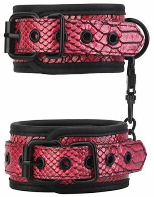 Стильные наручники с эффектом змеиной кожи из коллекции Blaze Luxury Fetish предназначены для сексуальной и комфортной игры. Мягкий, но прочный неопреновый материал обеспечит комфорт. Размер наручников полностью регулируется простыми пряжками в виде ремня. Они скреплены между собой черной цепью длиной 10 см (съемная с одной стороны).