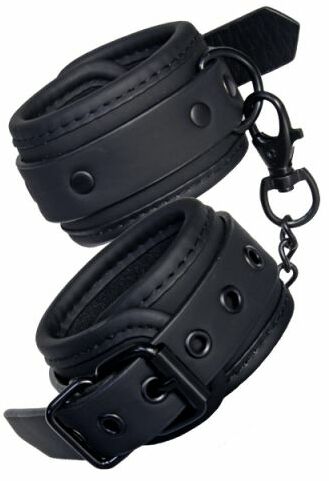 Пара стильных черных наручных манжет с полностью черной фурнитурой без никеля и подкладкой из мягкого, но прочного неопрена для сексуальной и комфортной игры. Манжеты на запястьях полностью регулируются с помощью простых пряжек в виде ремня. Цепочка длиной 10 см скрепляет манжеты. Цепь съемная с одной стороны с помощью крючка. Можно прикрепить больше цепей, веревочных крюков или дополнительных грузов.