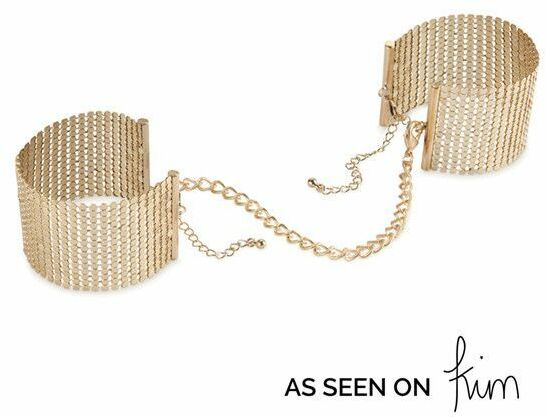 Наручники выглядят очень необычно благодаря металлической сетчатой структуре - они, скорее, напоминают дорогое украшение. Золотистый металлический браслет - это универсальный аксессуар, который подойдет и под деловой стиль одежды, и для похода на вечеринку. А если цепочки браслетов соединить между собой, они превратятся в изысканные наручники, приглашающие к самым развратным действиям… Наручники можно использовать и для фиксации рук, однако стоит помнить, что в первую очередь - это шикарное украшение, и прикладывать силу не стоит.