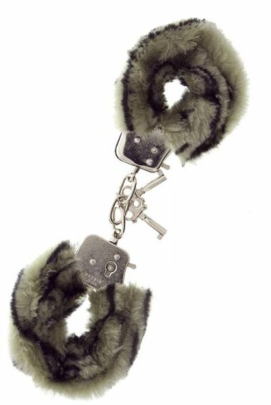 Металлические наручники с красивым искусственным мехом под зебру. В комплекте два ключика.