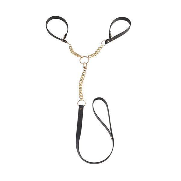 Предлагаем купить наручники с поводком Indiscrets MAZE - T-Restraints Black: изящный аксессуар из ремней и цепочки, который сделает ваши эротические игры еще более горячими. Ширина наручников свободная и зависит от натяжения поводка, который, к тому же, еще и съемный.
