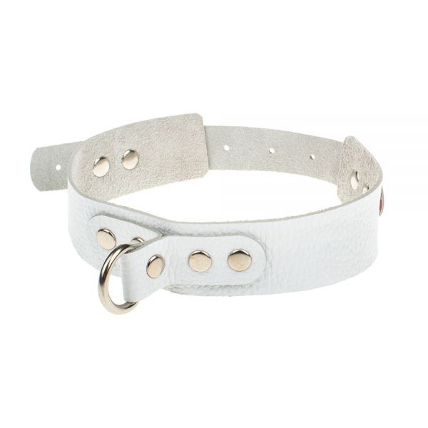Брутальный ошейник из натуральной белой кожи. Украшен металлическими заклёпками. Поможет Вам еще больше возбудиться во время игр с легкими элементами БДСМ. Есть полукольцо для присоединения поводка.