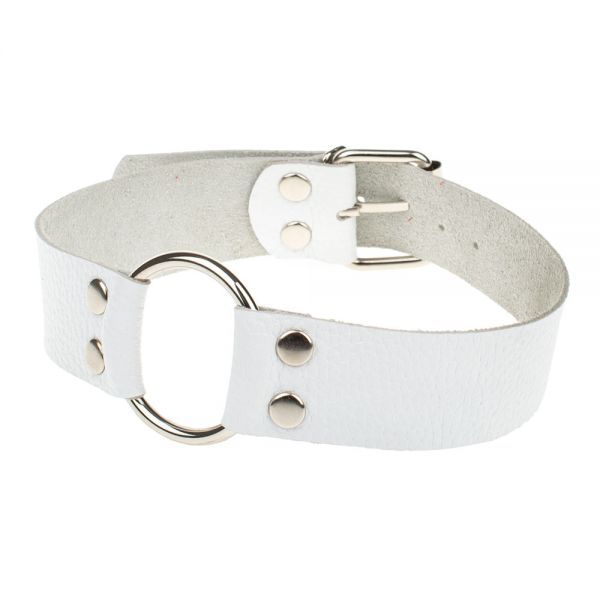 Классический белый ошейник ручной работы из натуральной кожи высшего качества. Украшен минимальным количеством металлических заклёпок. Красивый и удобный в использовании. Незаменимый аксессуар для лёгких БДСМ игр.