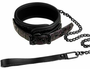 Этот набор Collar & Leash имеет гладкий и блестящий узор с тиснением в пурпурно-черном цвете. Он изготовлен из черного никелевого сплава и отделан мягким, но прочным неопреном для сексуальной и комфортной игры. Размер легко регулируется благодаря застежке-пряжке. Черный металлический поводок с прикрепленной петлей для запястья можно легко подсоединить или отсоединить с помощью зажима.