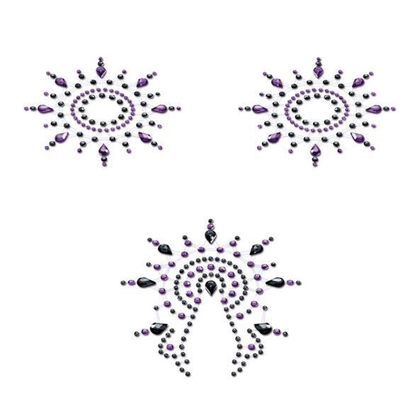 Предлагаем купить пэстис Petits Joujoux Gloria set of 3 - Black/Purple — гламурный набор ювелирных кристаллов, который будет отлично смотреться в качестве дополнения образа сексуальной соблазнительницы. Более 200 сверкающих камней на вашем теле сделают вас неотразимой!