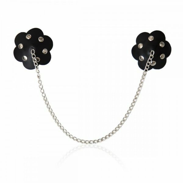 Пэстисы на соски для смелого образа выполнены из качественного кожзама в виде цветка и украшены круглыми заклепками.