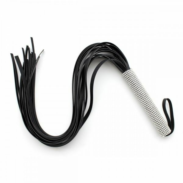 Черная плеть с рукоятью, окутанной сверкающими стразами, выглядит сексуально и завораживающе в руках госпожи.