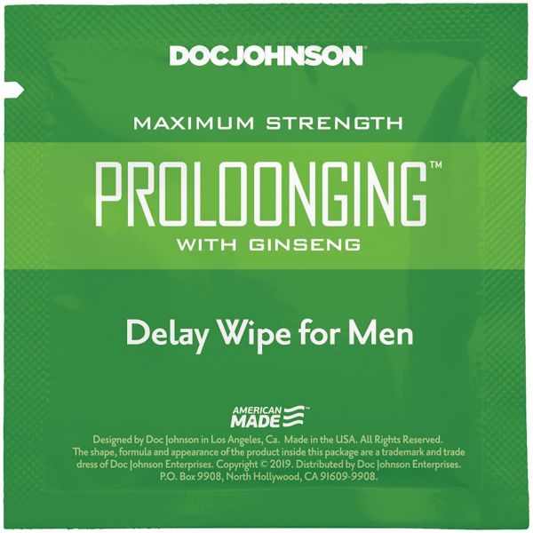 Хотите всю ночь посвятить страсти? Тогда вам точно нужно купить пролонгирующие салфетки Doc Johnson Delay Wipes For Men — удобные одноразовые салфетки, которые снижают чувствительность за счет бензокаина и дают возможность продержаться так долго, как вам захочется! В состав входит также экстракт женьшеня - традиционный афродизиак, усиливающий возбуждение.