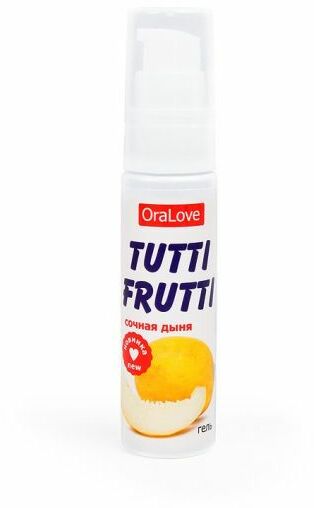 TUTTI-FRUTTI сочная дыня - гель-лубрикант на водной основе с сладким вкусом и головокружительным ароматом спелой дыни! Он откроет новые грани орального секса, подарит невероятные эмоции во время любовной игры! Гель имеет лёгкую нежную текстуру, увлажняет и ароматизирует. Не нарушает микрофлору интимных зон. Совместим с изделиями из латекса и синтетических материалов. Не липнет после нанесения. Легко смывается водой. БЕЗВРЕДЕН ПРИ ПРОГЛАТЫВАНИИ!